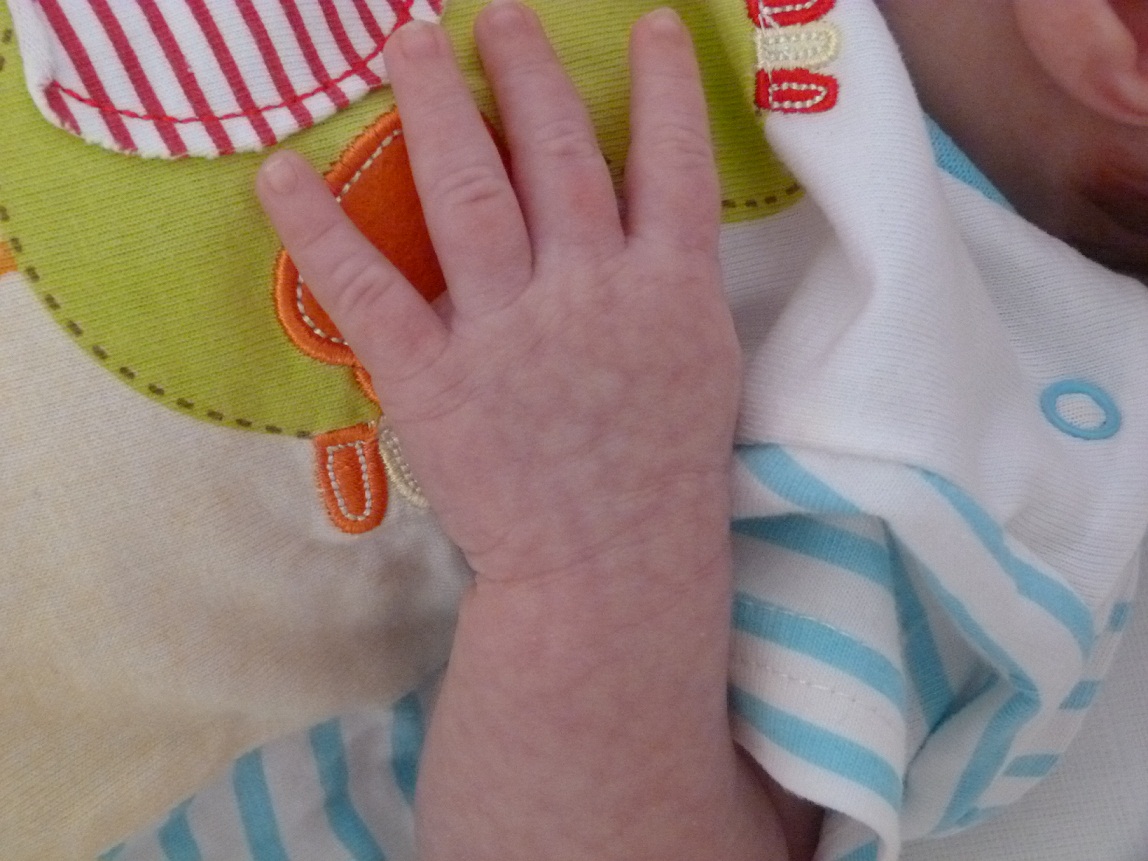 Mi bebe, Alejandro, presenta en las extremidades unas manchas blancas y rojas. Como no se como describirtelas, adjunto una foto.